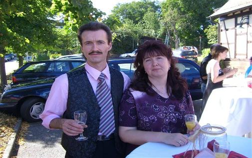 Stefan Naser mit seinem Schmusebär Petra bei einer Hochzeit in Löwenstein .